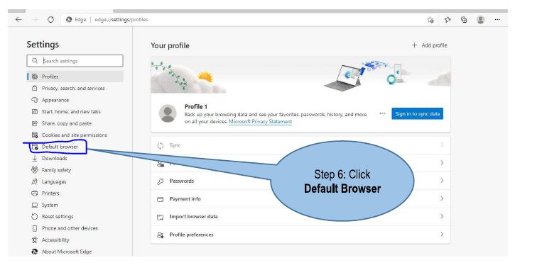 - Open Edge → Settings → Default Browser.